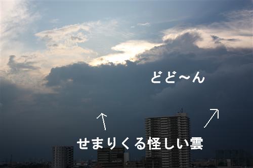 変な雲が、来た~!今お散歩行ってどしゃ降りになったら嫌だし