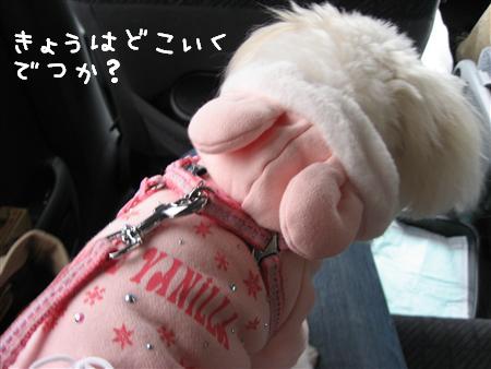 車の中でママと一緒に待つミルク