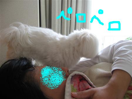 と、なぜかパパの腕をしきりに舐めています
