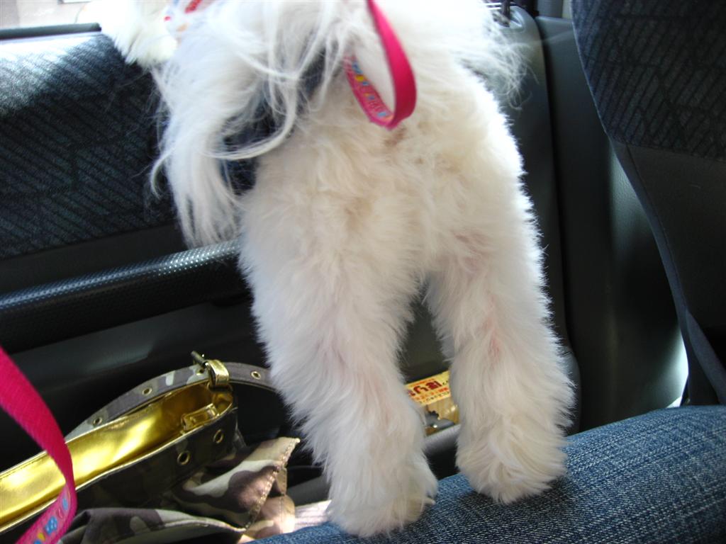車に乗ったとたんミルクはトイレシートにいっぱいオシッコしました