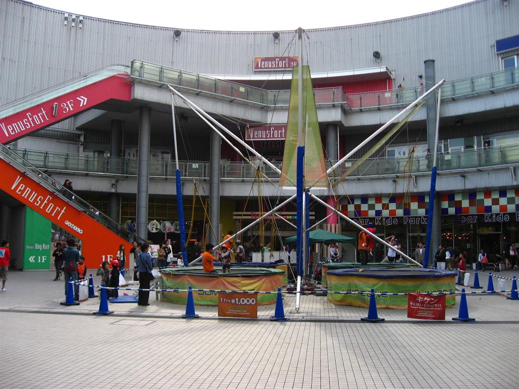 バンジートランポリンを横目に