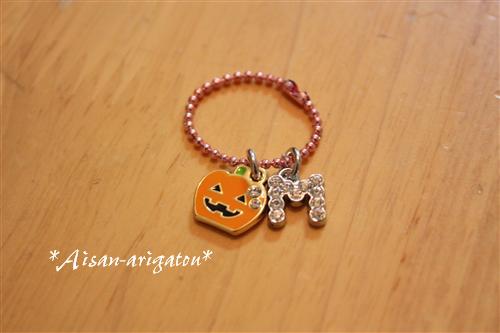 ハロウィンのカボチャとミルクの「M」がついてます