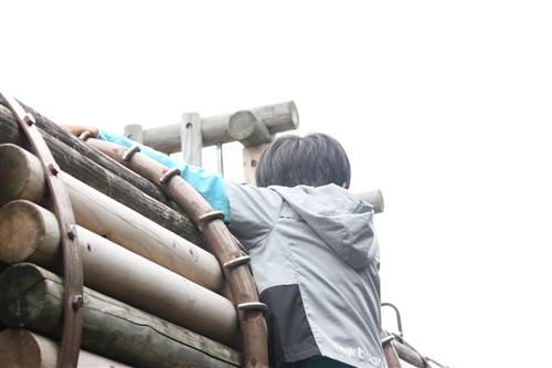 遊具の上のほうに登ってるユタッチ