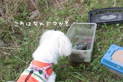 ミルクは初めて見るザリガニ。まさに未知との遭遇だね!