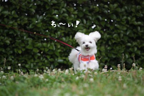 オヤツも無事だとわかって、違う芝生の場所で走るミルク