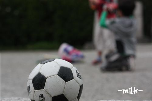 ミルクもサッカーボールと一緒に撮ろうと横に行かせたのですが