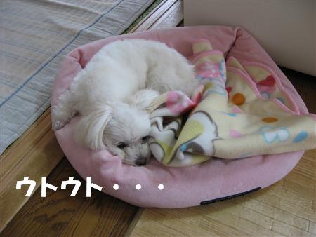 昼間、自分のベッドと毛布の間に挟まってウトウト