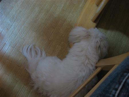 ミルクは私の椅子の下で寝てました(ふて寝?)