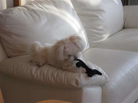 ソファの上でカミカミ(ぷっ変な顔~