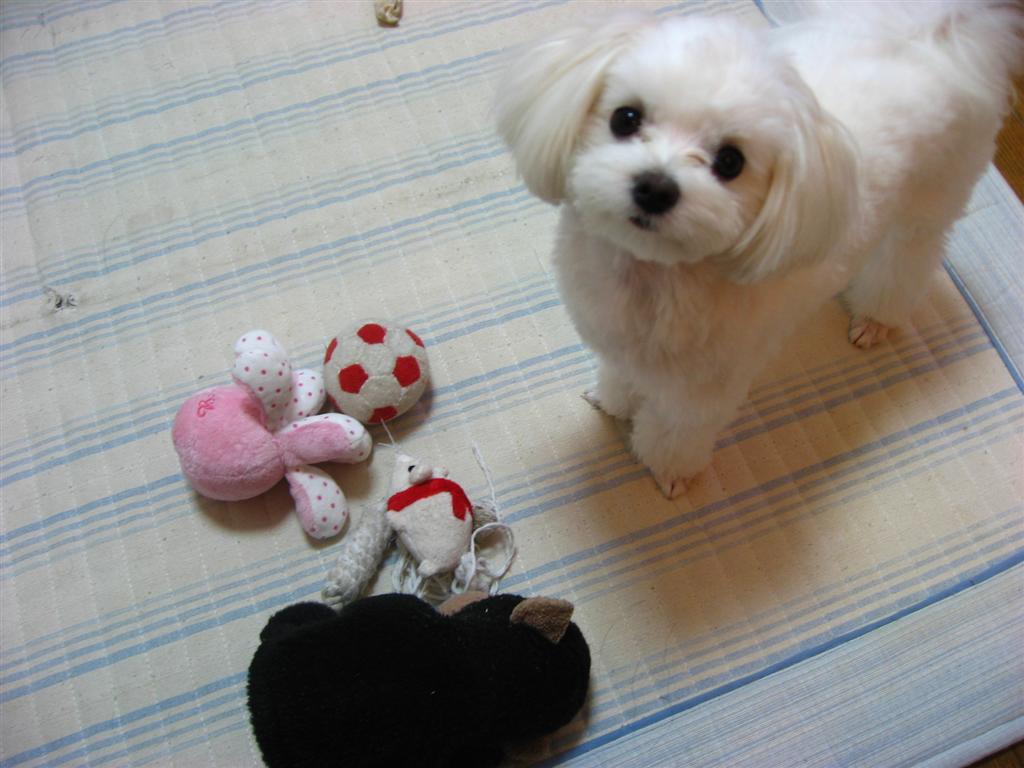 ミルクが次々に私の前にオモチャを持って来ました
