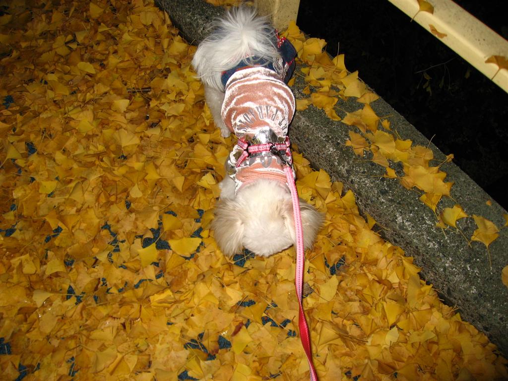 帰り道、イチョウの葉っぱがたくさん落ちている場所があったのでパチリ