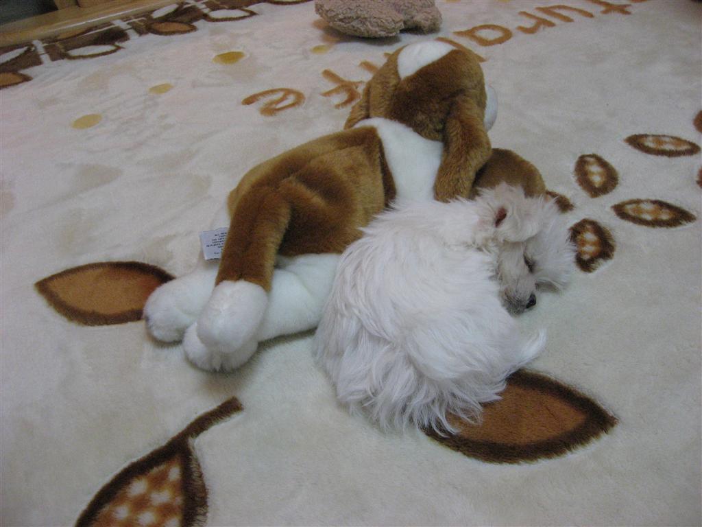 いつもは動かぬいぐるみと添い寝したり、