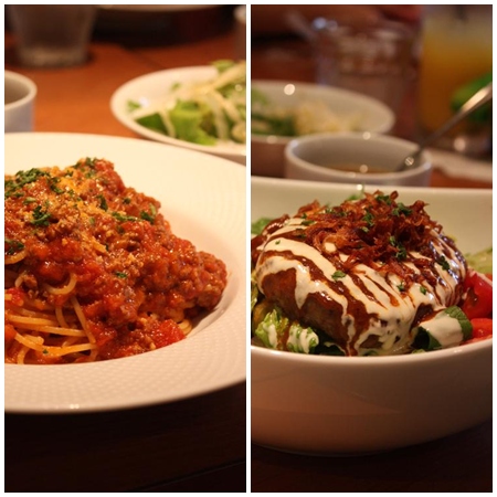 私が食べたミートソース・茶々ママさんが食べたロコモコ
