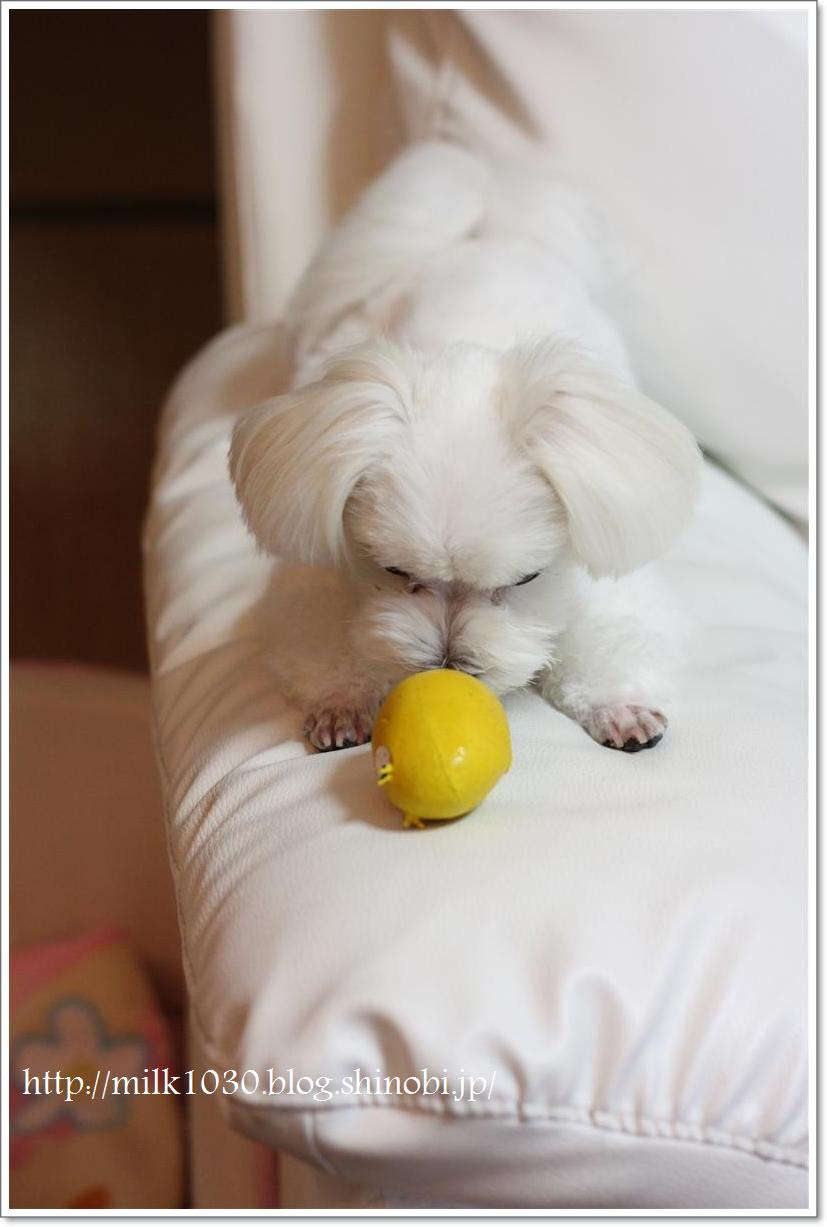 プッちゃんは大好きなボール遊び