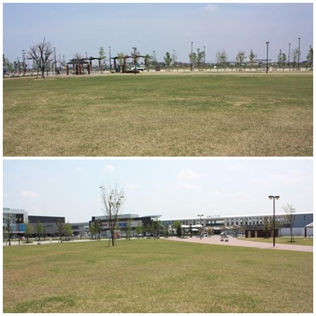 レイクタウン駅の前にある芝生の公園です