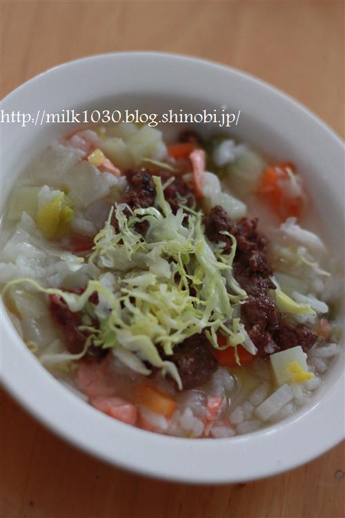 材料はジャガイモ・ニンジン・大根・鮭・白菜・白米