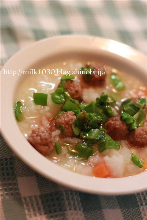 炒めたキャベツとピーマン・豚肉の肉だんご・ニンジン・大根・白米