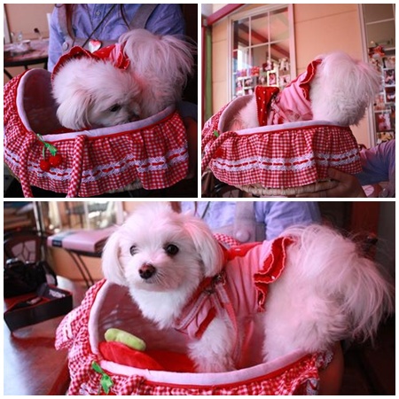 ライちゃん、ラヴちゃんのカゴに入ってご機嫌さん♪